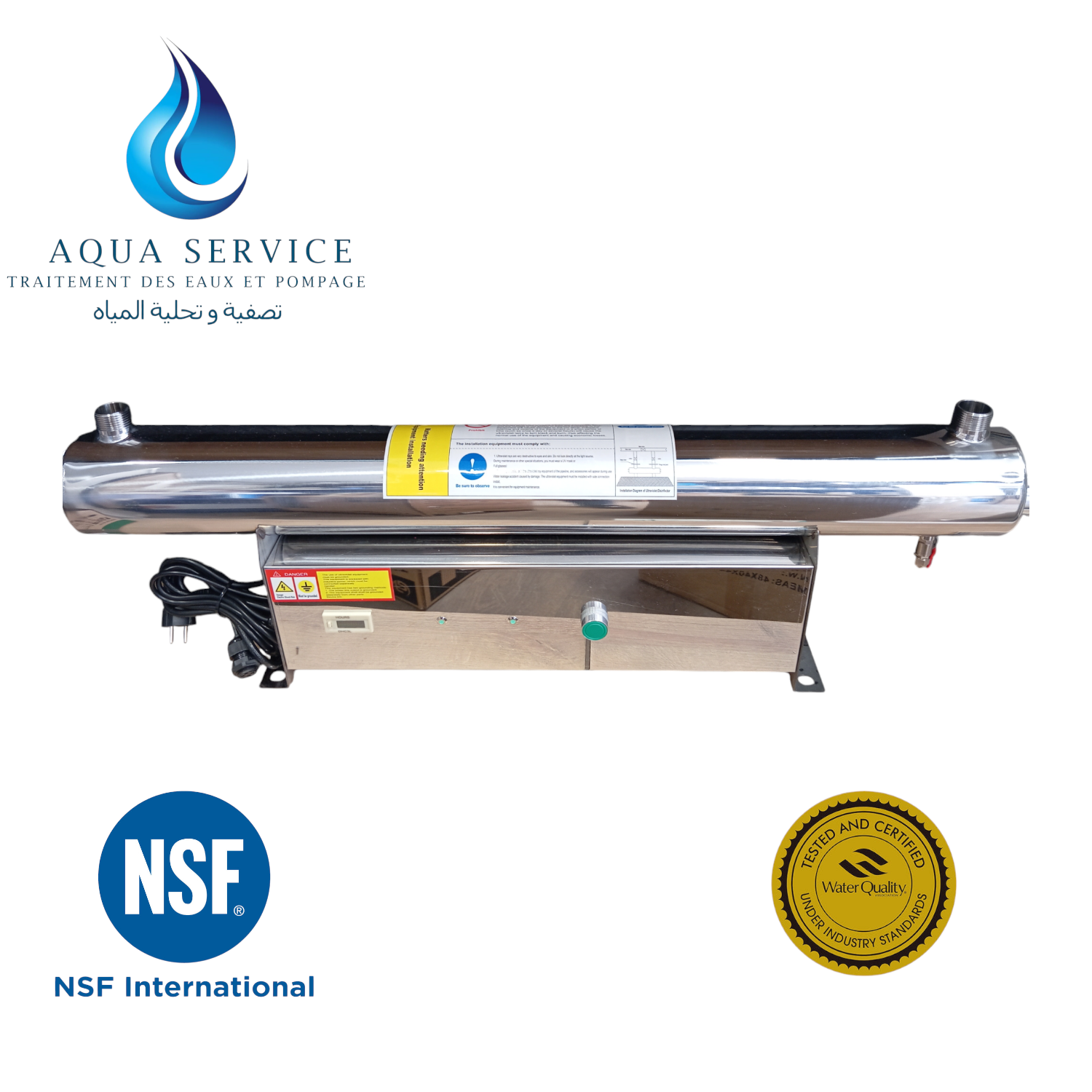 Pour qu'un stérilisateur UV soit efficace à 100%, l'eau doit être claire. Si l'eau est trouble (présence de sédiments ou de calcaire), les rayons UV ne peuvent pas atteindre toutes les bactéries.C'est pourquoi, chez Aqua Service, nous recommandons toujours :